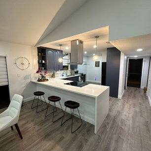 Nuestro equipo en Multiservices AJMB tuvo el placer de trabajar en la remodelación de una hermosa cocina en Sunny Isles Beach. Utilizando materiales de alta calidad y técnicas avanzadas, transformamos completamente el espacio. Desde la instalación de elegantes encimeras hasta la renovación de los gabinetes, cada detalle fue cuidadosamente diseñado para crear una cocina funcional y estéticamente atractiva.